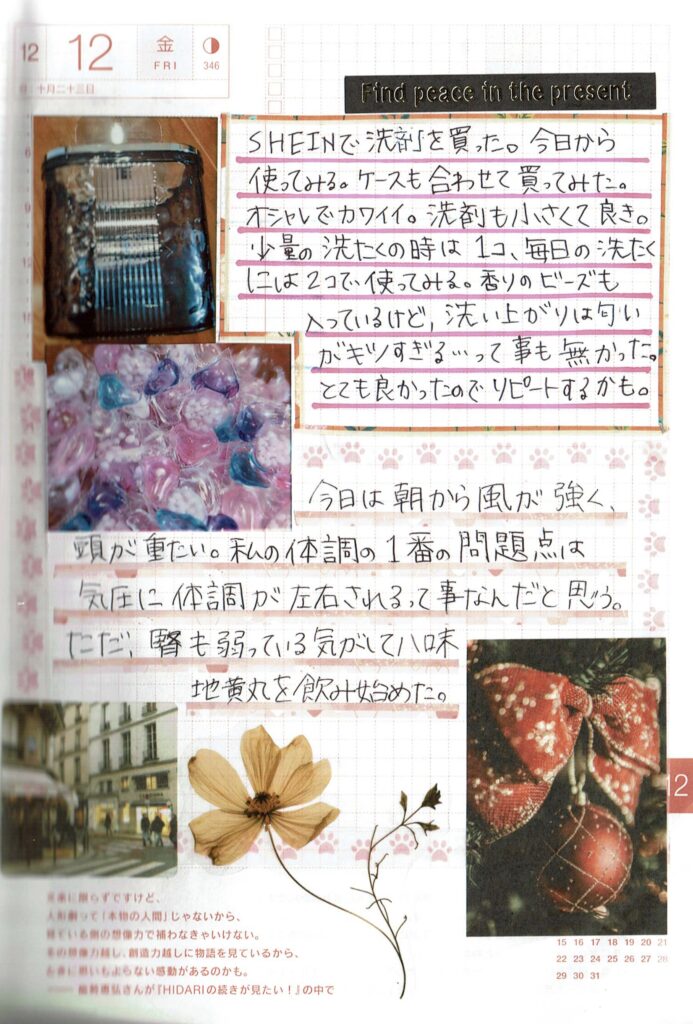 今日の手帳には、