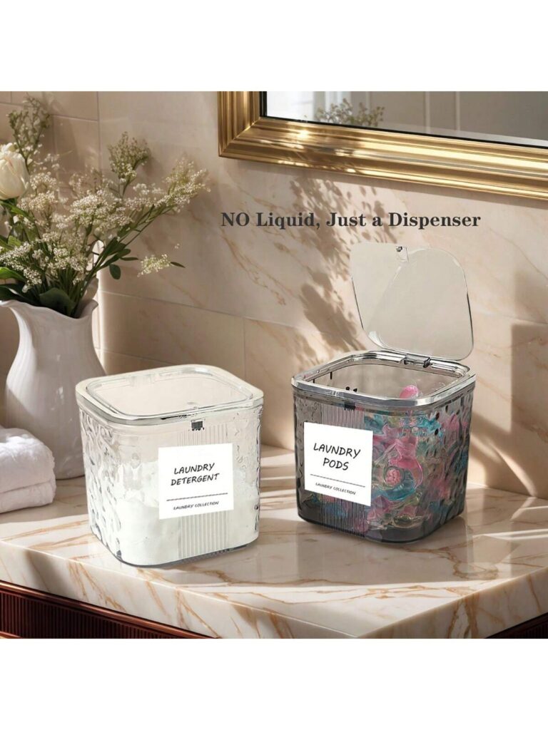 🛒洗濯ポッド収納ボックス、蓋付き、ランドリールームの整理と保管用